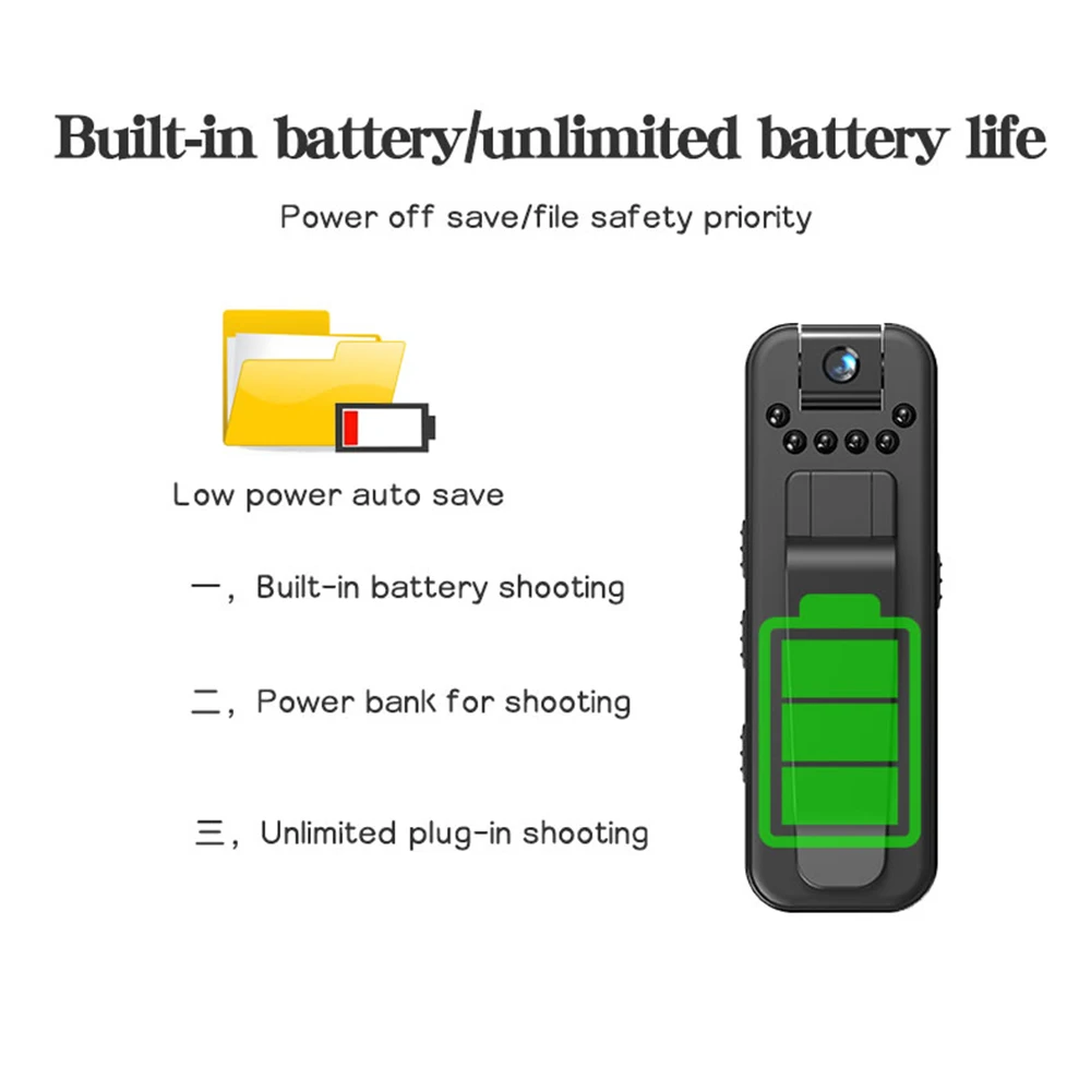 • Portable and Mini Design: This mini camera features a portable design, making it easy to carry around and record events independently.