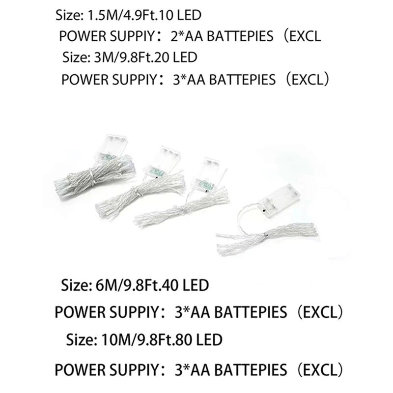 1Pack 10/20/40/80 Led Battery Powered String Lights Waterproof Fairy Lights For Bedroom Garden Party Christmas Tree Decorations