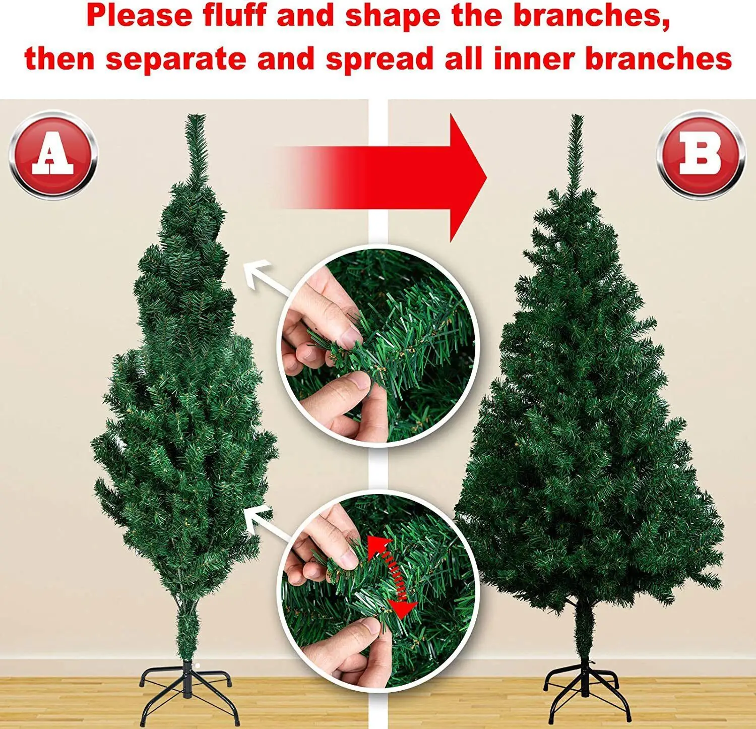 1.2m height, 240 branches, 6-inch branch tips; two-section trunk assembly;