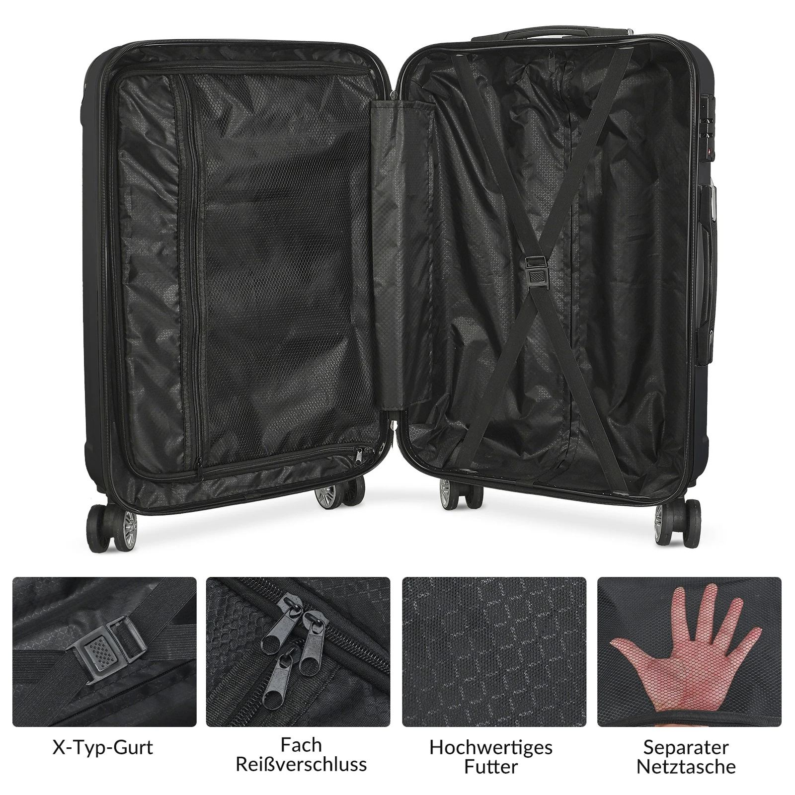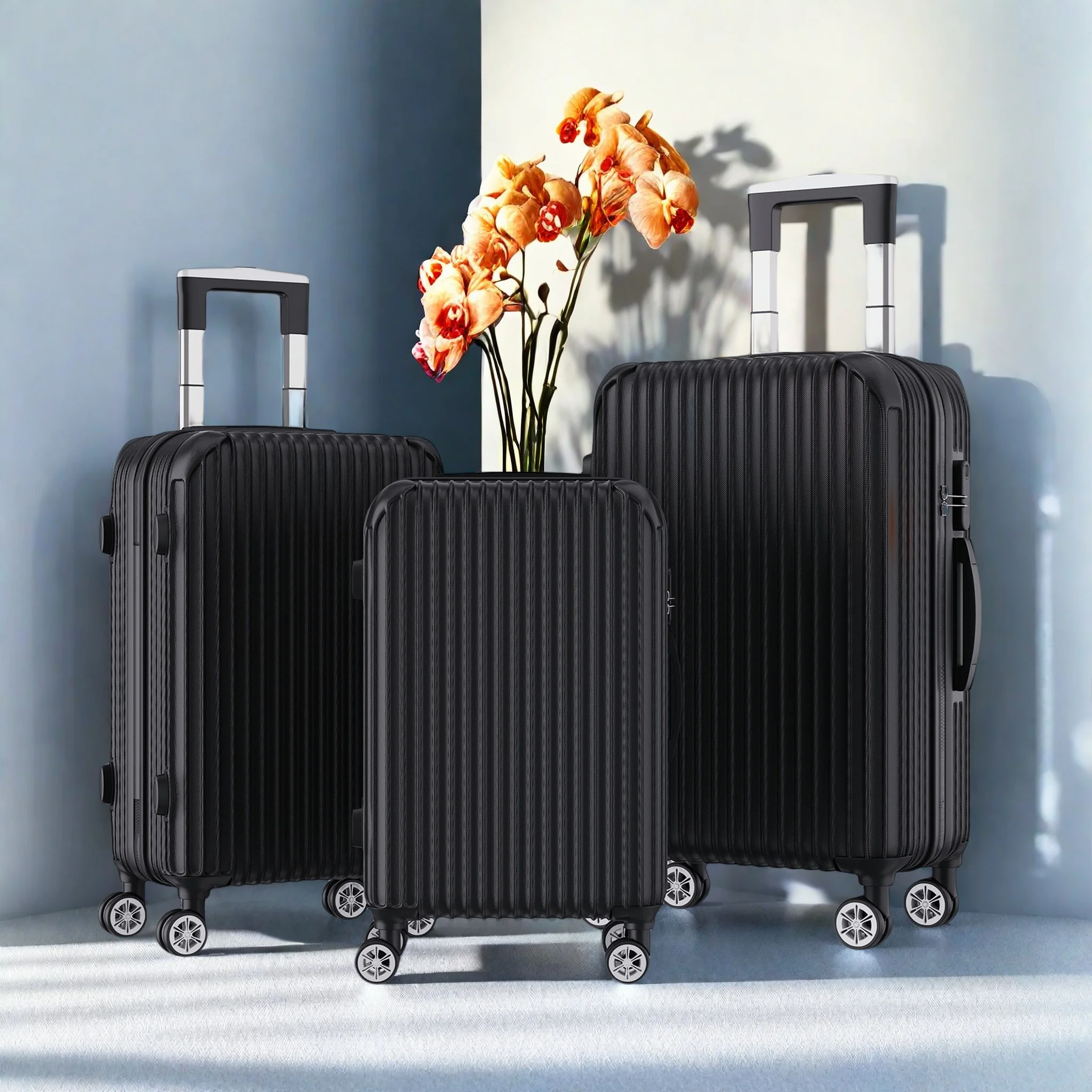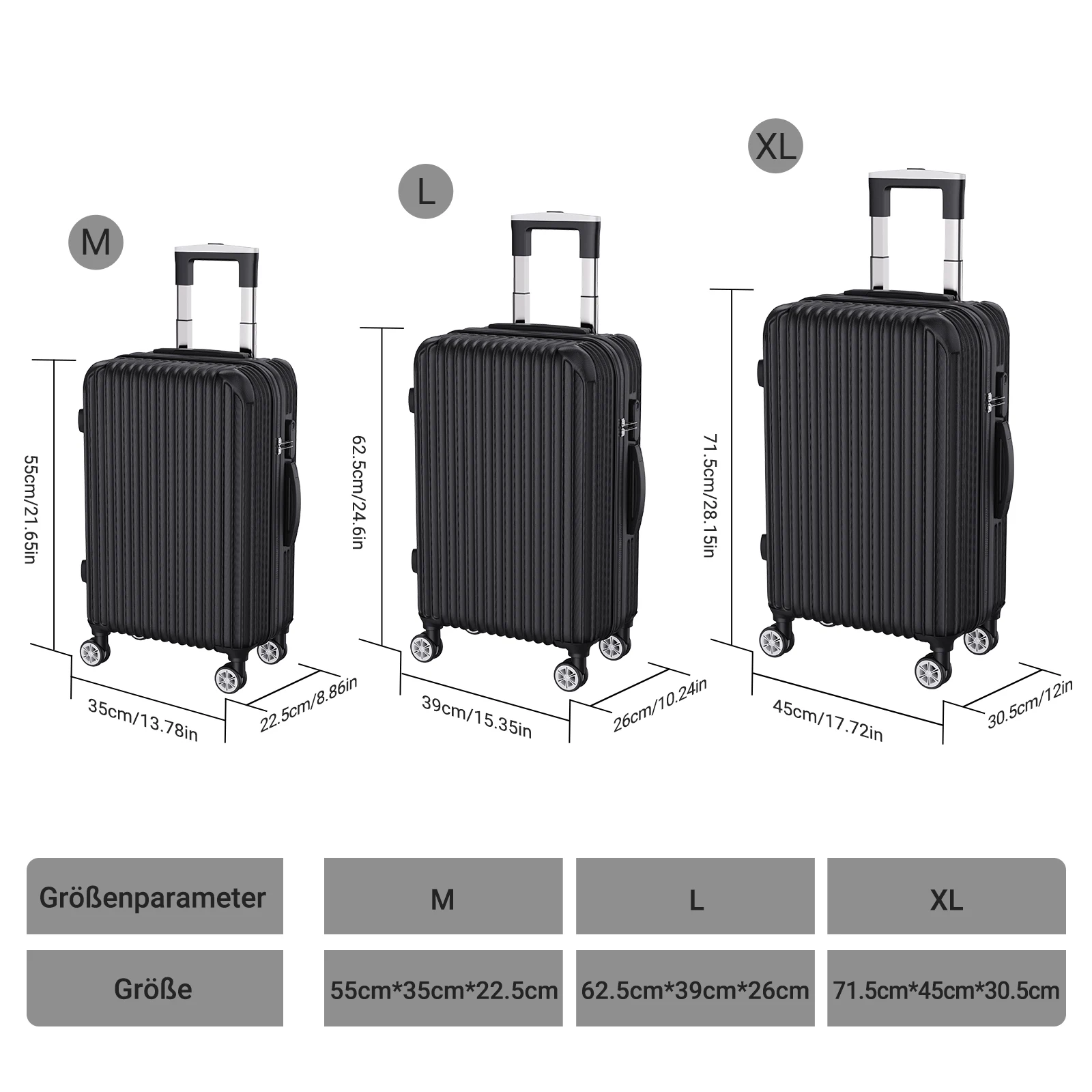 Hard shell trolley set for all travel lengths: 28"/24"/20" suitcase, protected by scratch-resistant ABS hard shell housing.