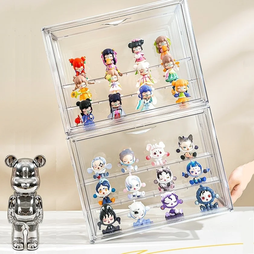Clear Display Box Stackable Plastic Dustproof Storage Bins Figures Display Collectibles Bag Cosmetic Show Case with Interlayers