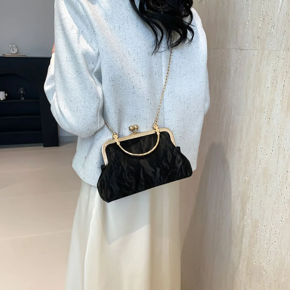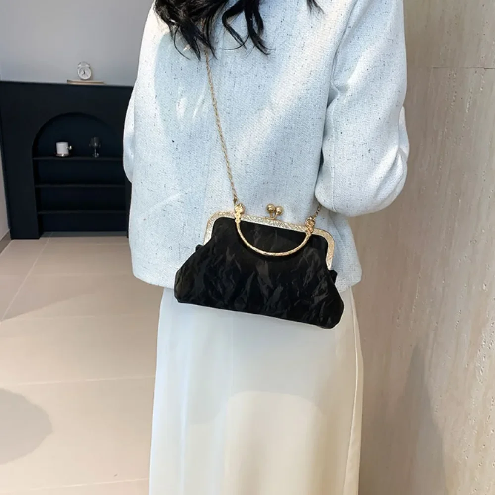 Gold Velvet Evening Bag Clutch Bag Women 2025 French Vintage Luxury Chain Purse Elegant Fashion Purse Wedding Party Handbag