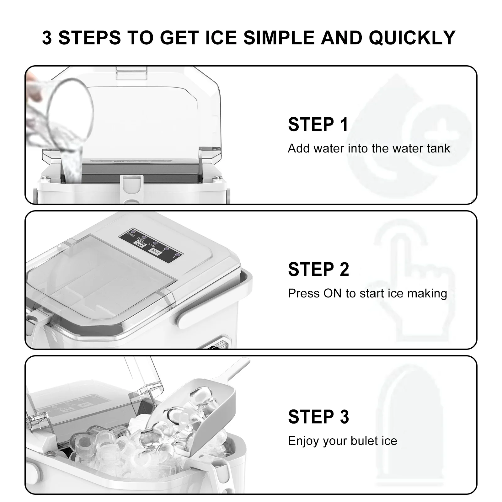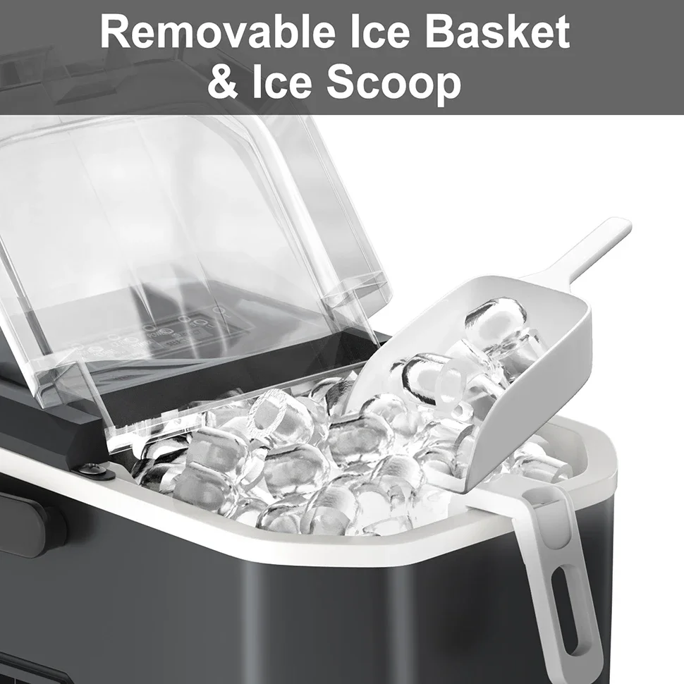 ✔ One-click self-cleaning technology ✔ Dual-size ice type is optional ✔ Silent and efficient ice making ✔ Portable handle + removable bracket ✔ European/English standard dual plug globally adapted