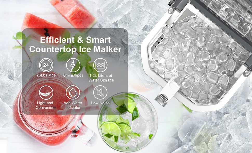 Ice time: 6-13 minutes/9psc (6-8min can be achieved after one hour of ice making)