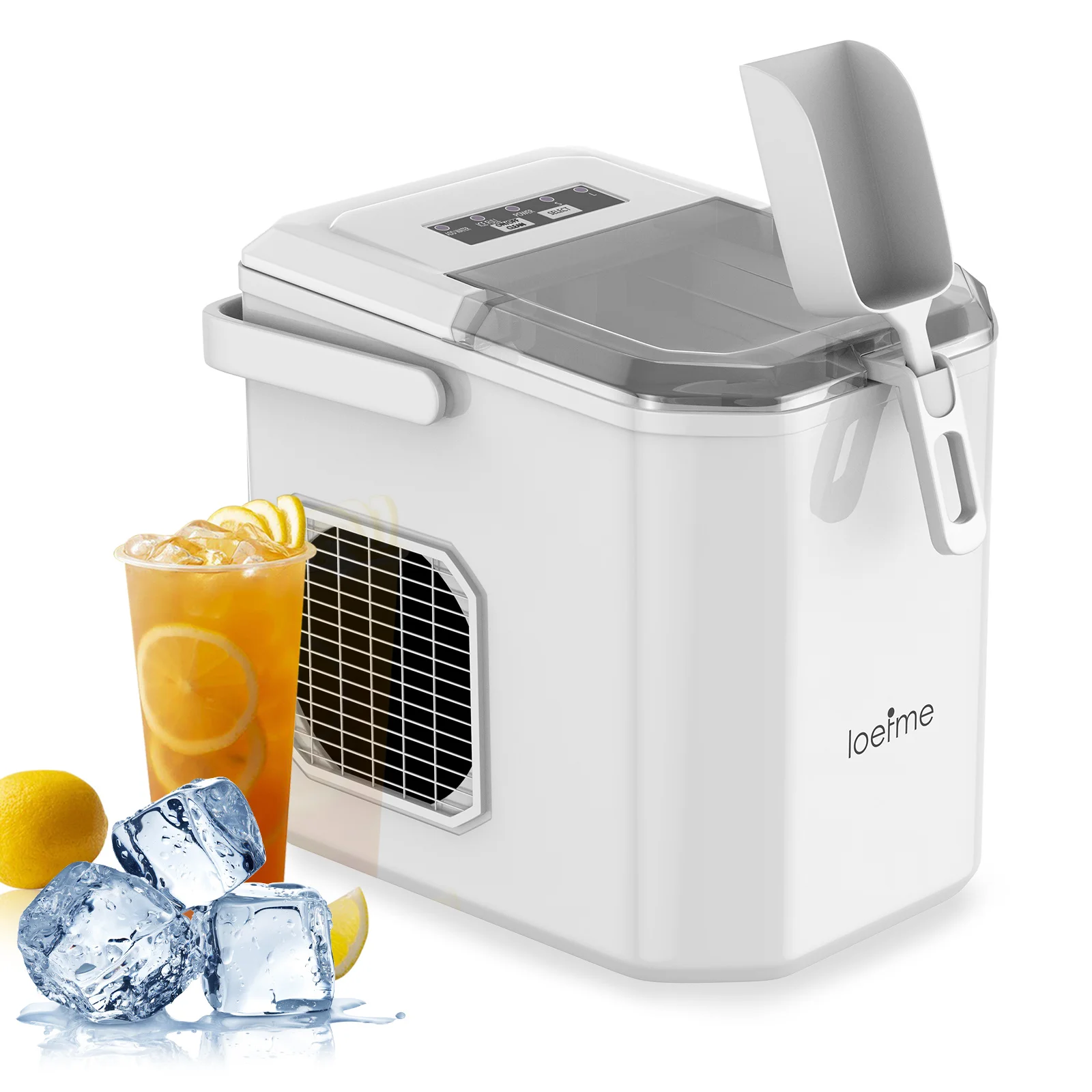 Multifunction panel: integrated power switch, water volume monitoring (water volume 1.2L), ice full reminder, ice type selection, cleaning mode, intuitive and simple operation.