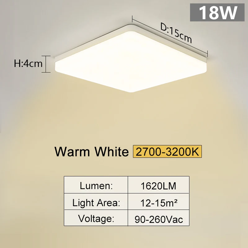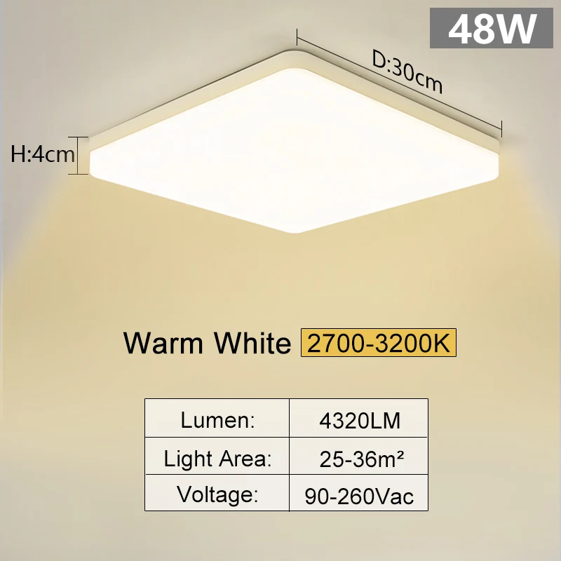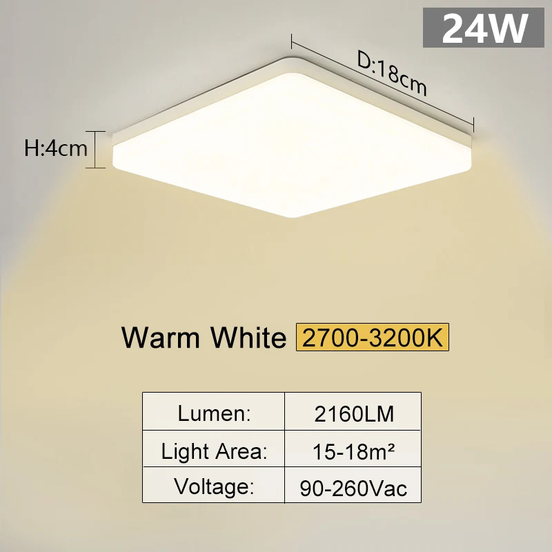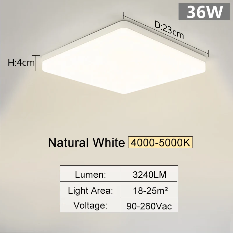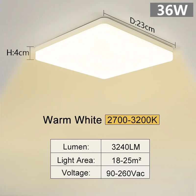 Square Led ceiling lamp for bedroom With Neutral white cold white warm white 48W 36W 24W 18W