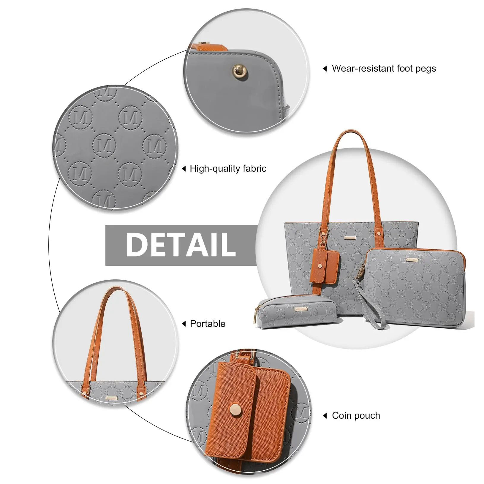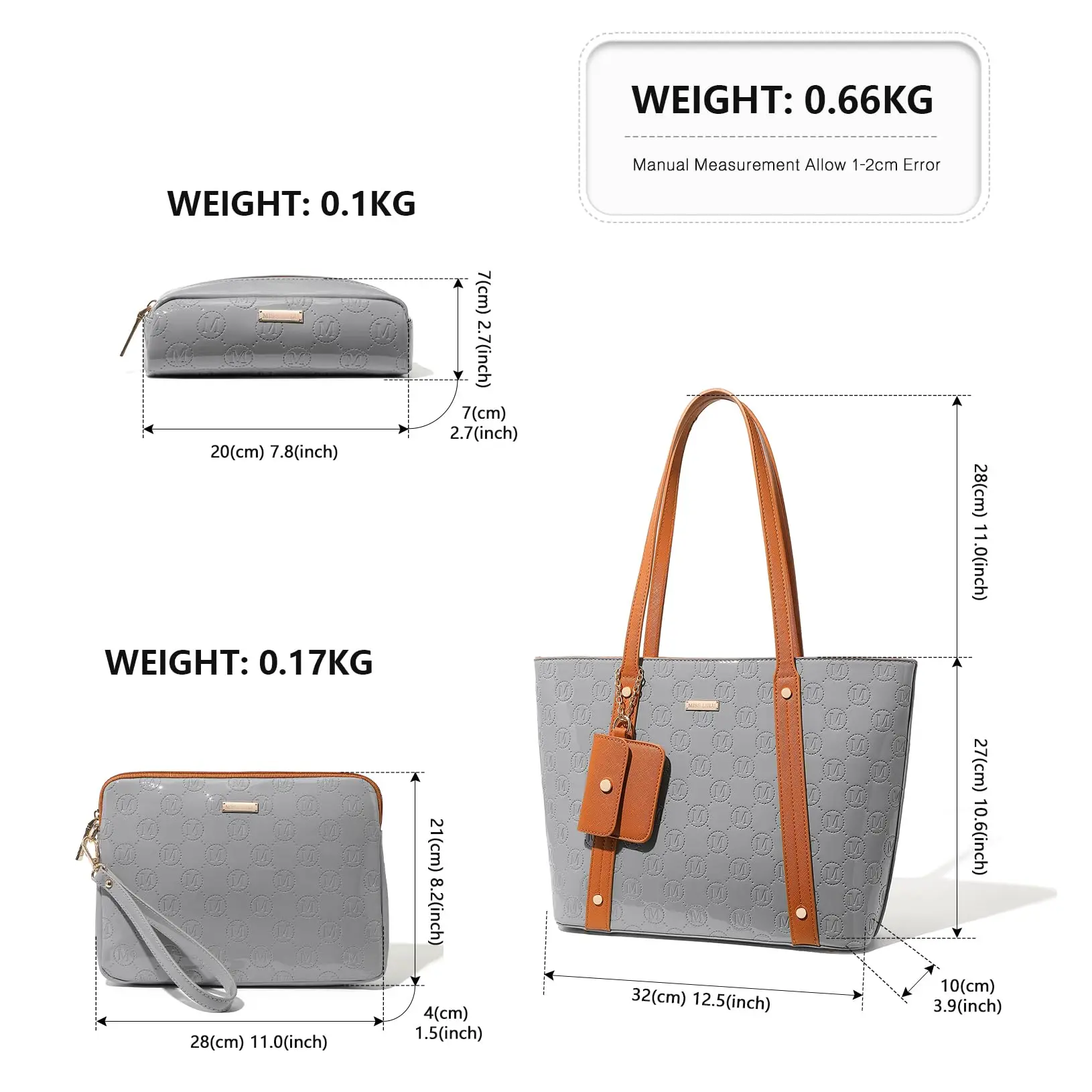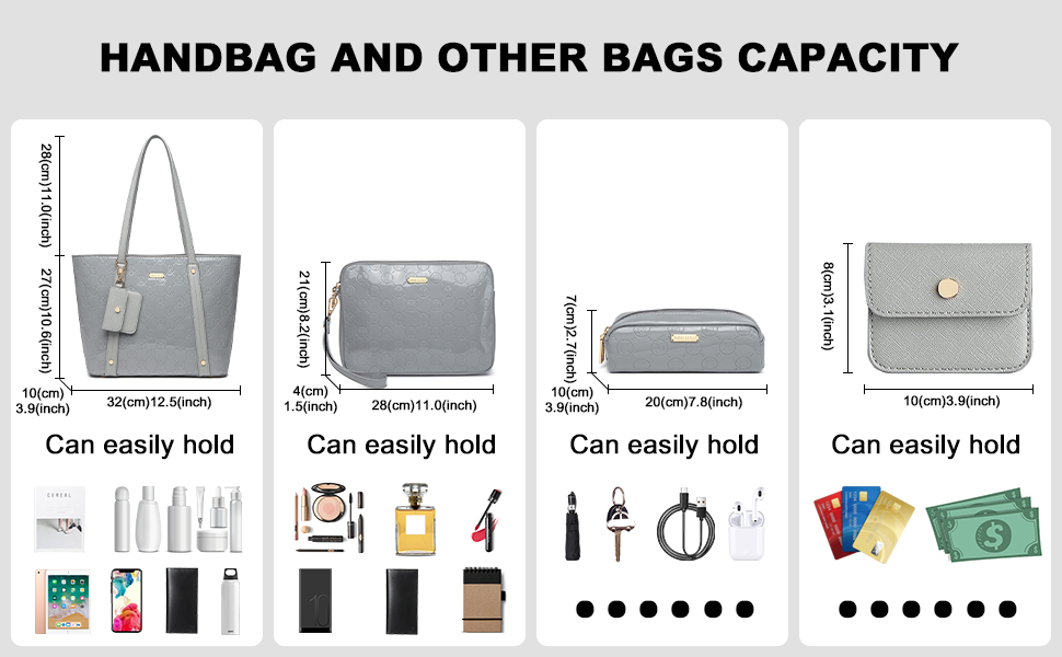 Additional bags Included: The set also contains an elegant clutch (28*4*21 cm), a cosmetic bag (20*7*7 cm) and a practical coin bag (9.5*7.6 cm), to organizers your stuff perfect.