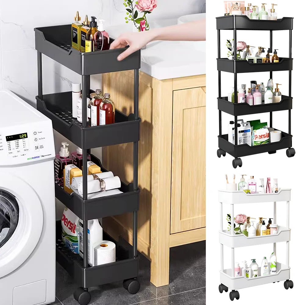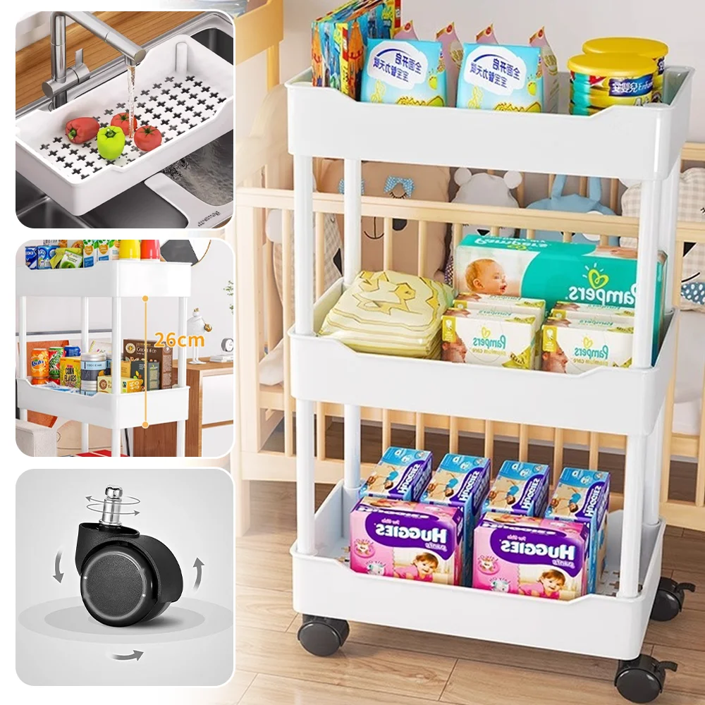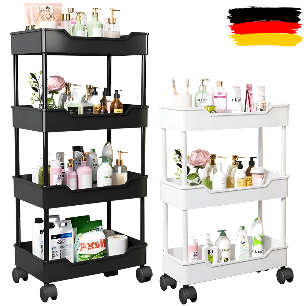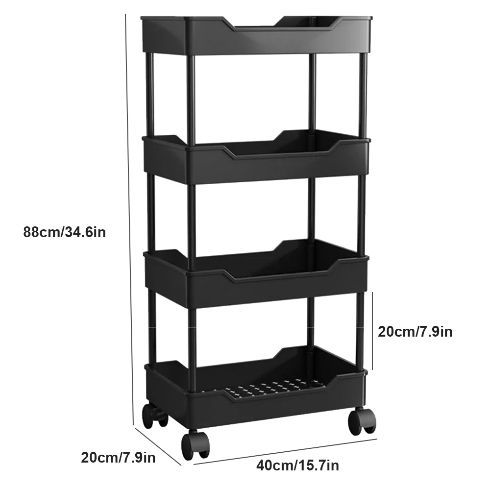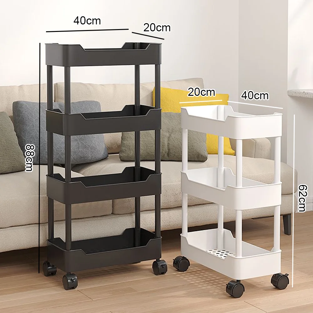1.Four easy-glide durable wheels that rotate 360° make the rolling cart organiser easy to slide out of any tight space;