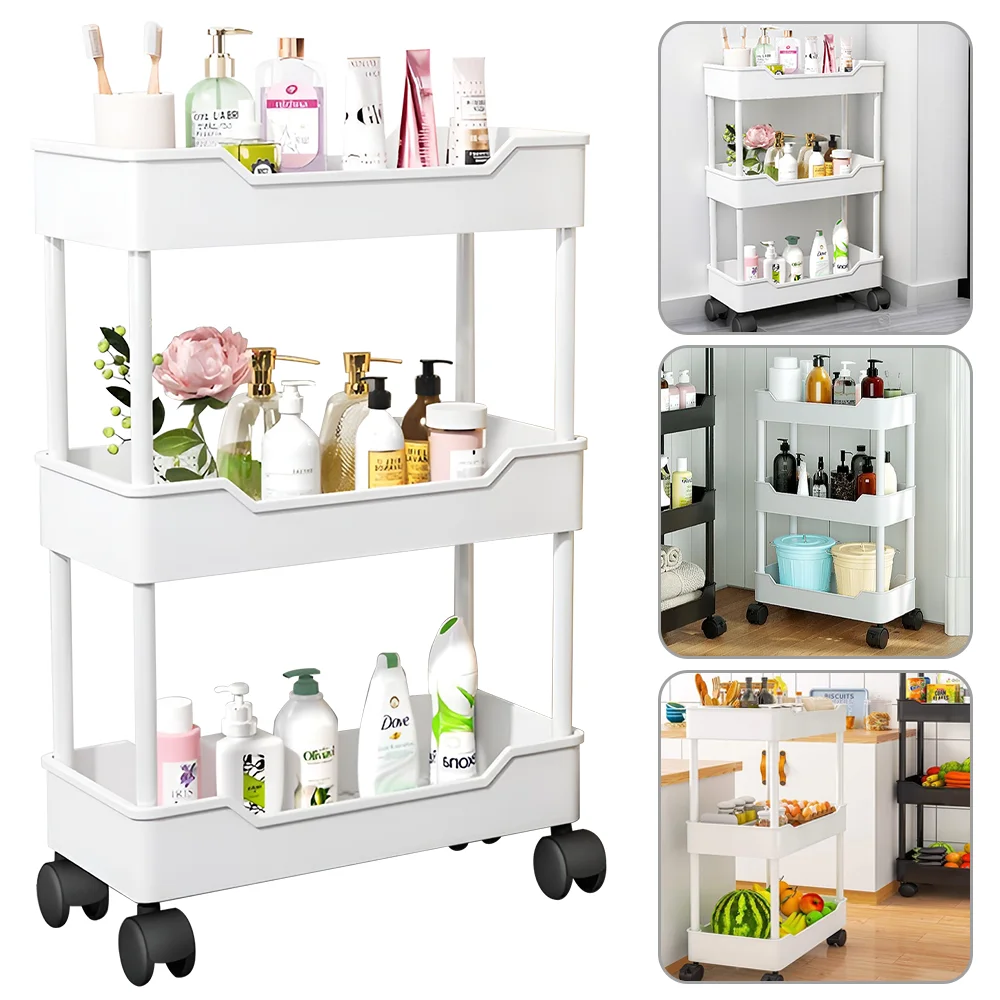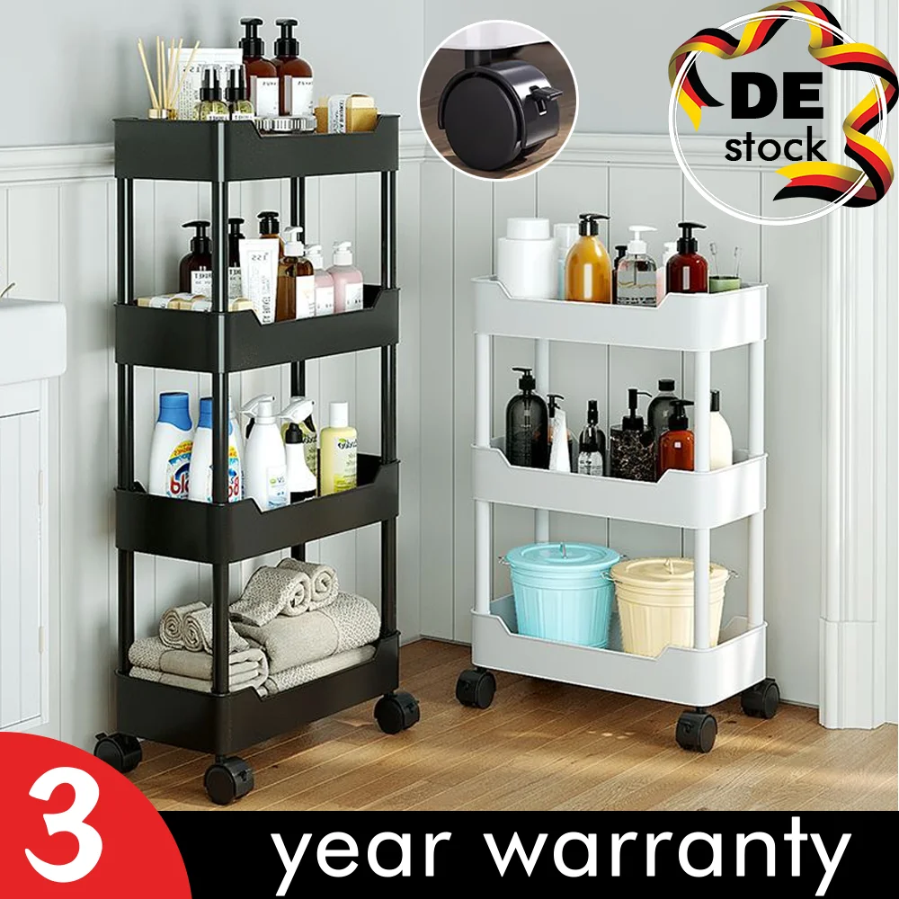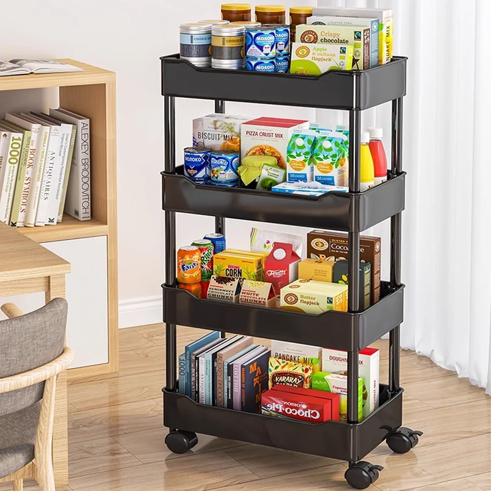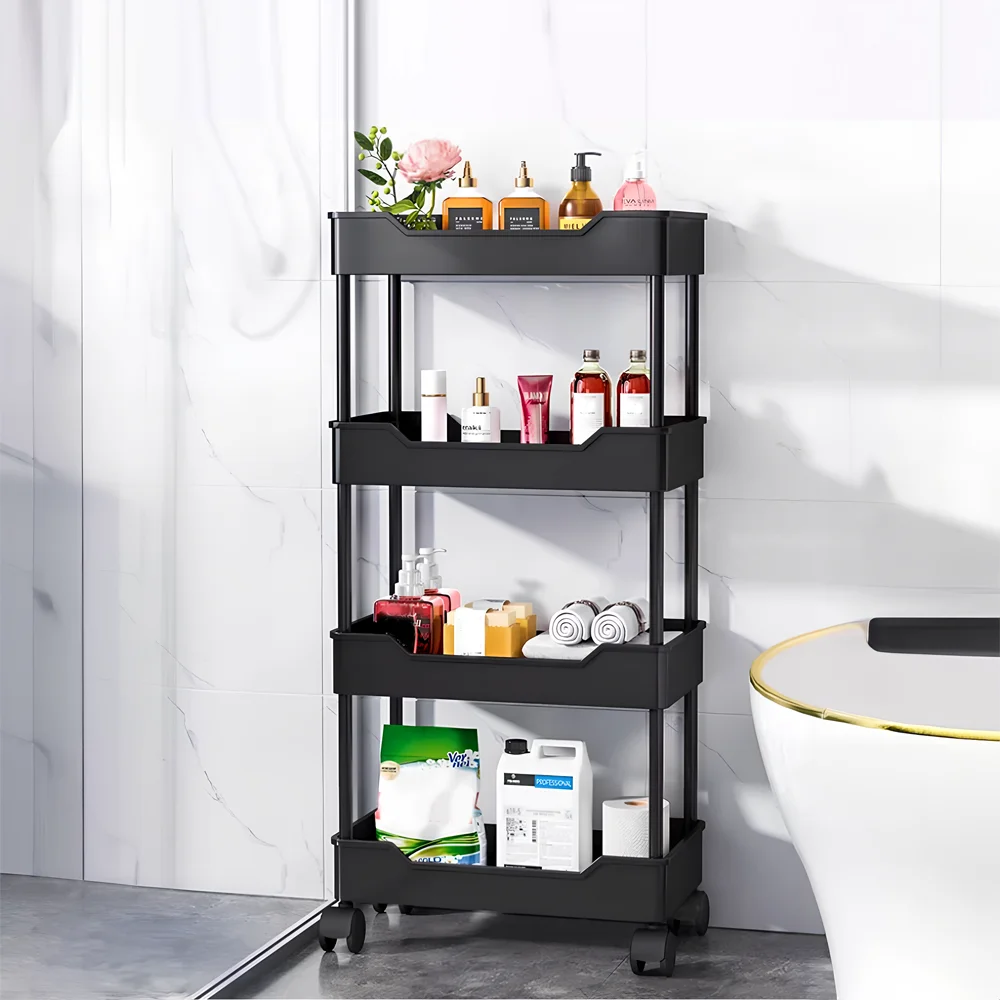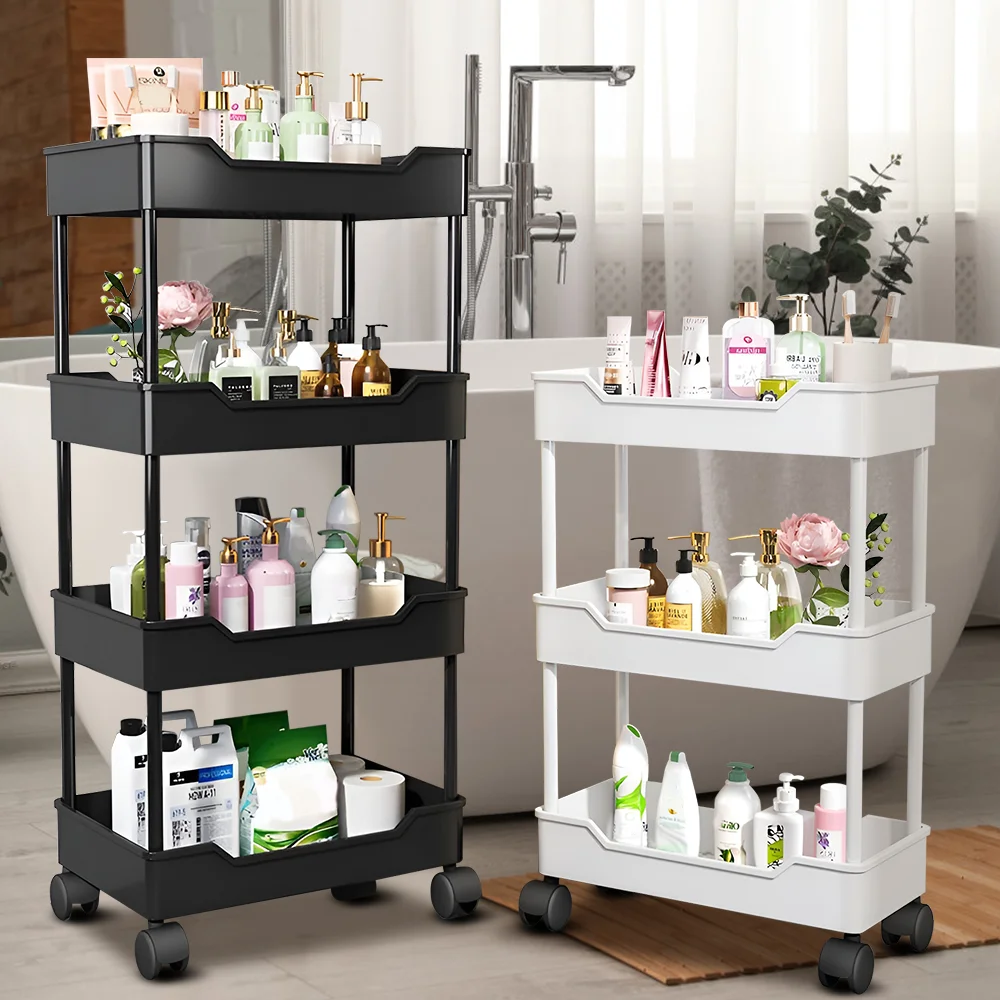1.Four easy-glide durable wheels that rotate 360° make the rolling cart organiser easy to slide out of any tight space;