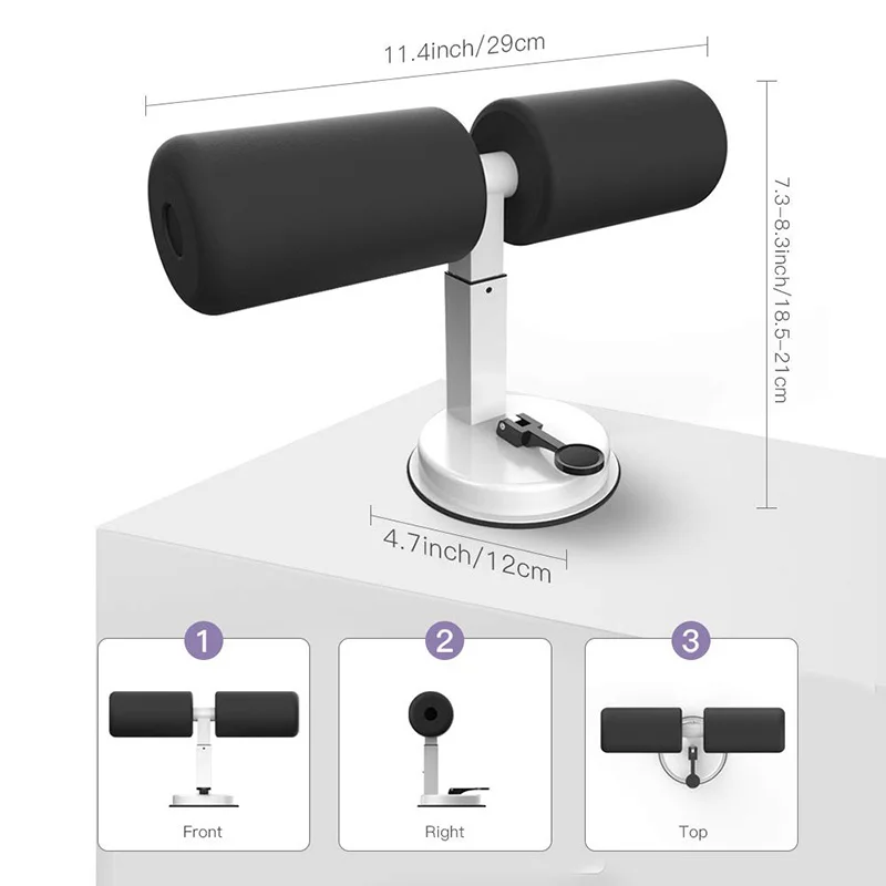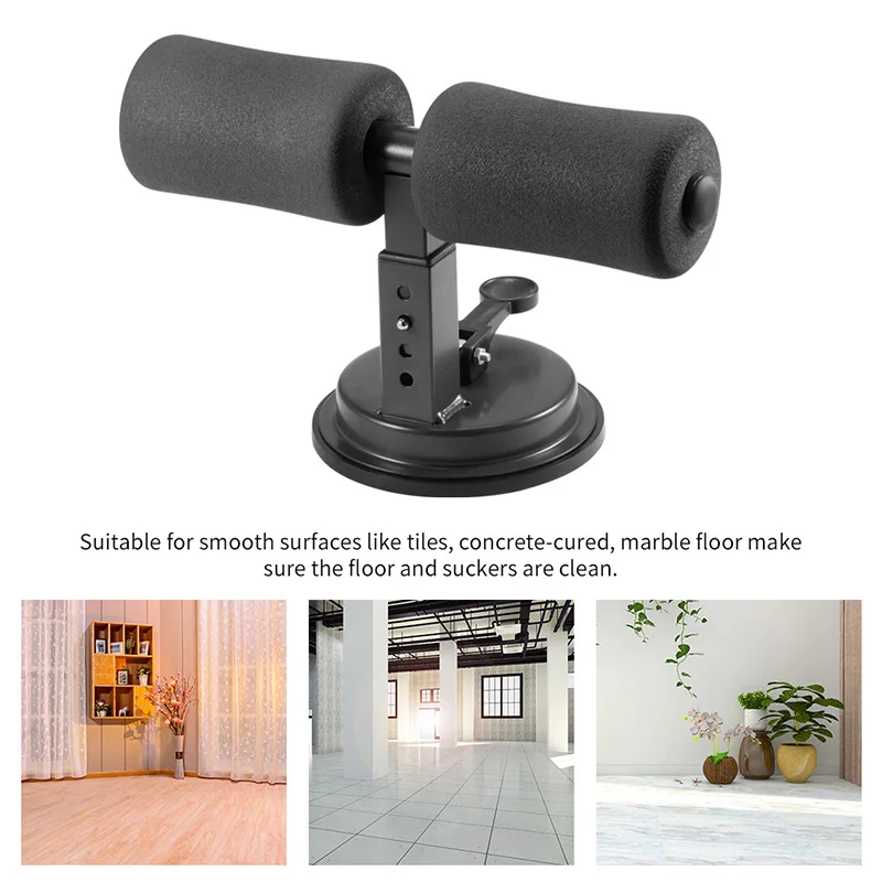 This self-suction sit-up bar is designed to free your hands and do exercises on your own.Rubber sucker firmly grips the floor to ensure a safe and stable stand for your training.