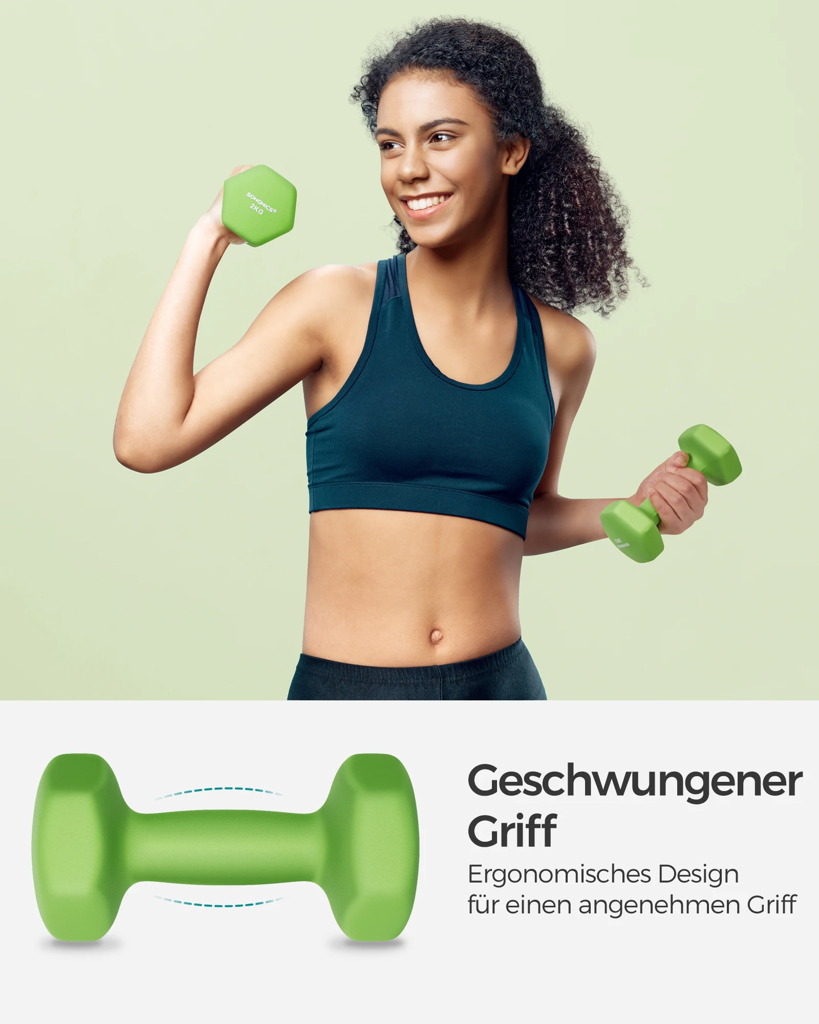[Comfortable handle]The ergonomically shaped handle with a length of 10 cm increases the grip of the dumbbells; the matte surface is skin-friendly and effectively avoids slipping, so that even sweaty hands are no problem during Dumbbell Training