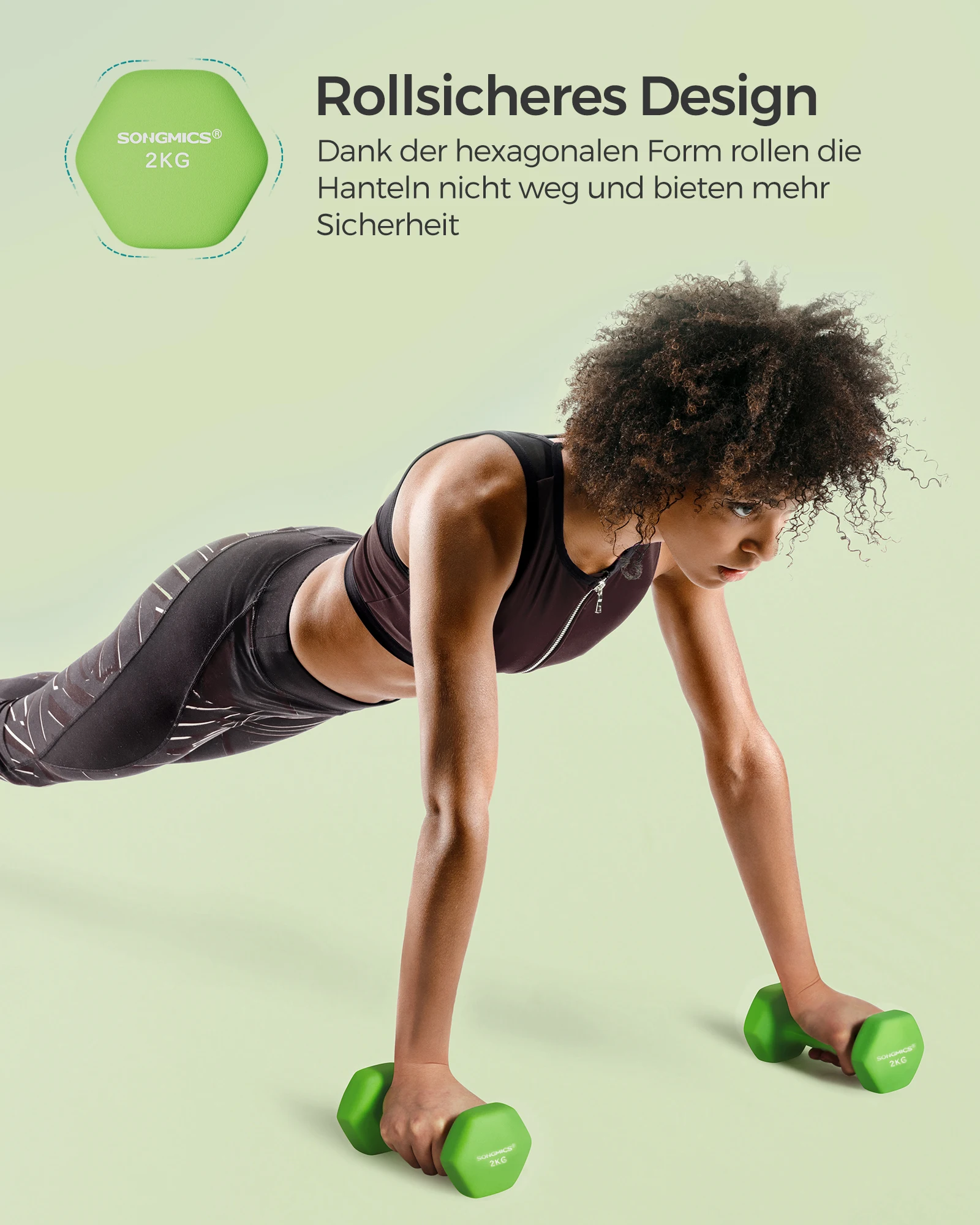 [Robust and roll-proof]Made from cast iron, the dumbbells are sturdy and durable; thanks to the hexagonal shape, the dumbbells are rollproof, so you can keep them safe anywhere in your home