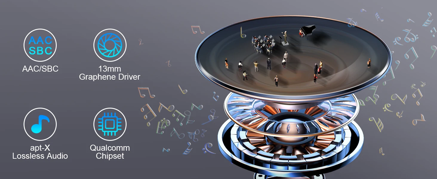 Equipped with a 13mm graphene speaker, enhancing bass and midrange performance.
