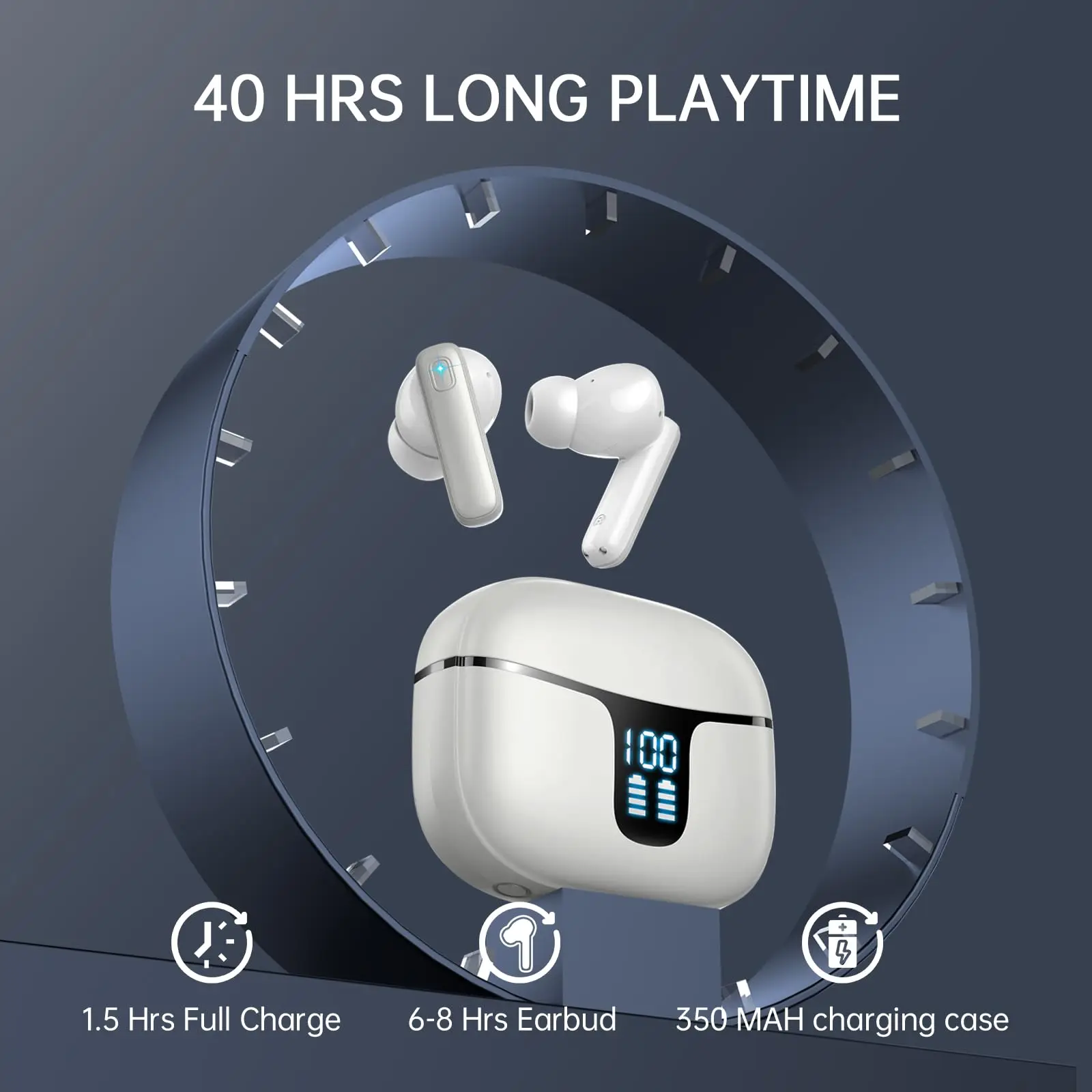 Wireless Earbuds with Bluetooth 5.3, In-Ear Headphones Featuring 4 ENC Mics and 40 Hours of Playtime, LED Display Included.